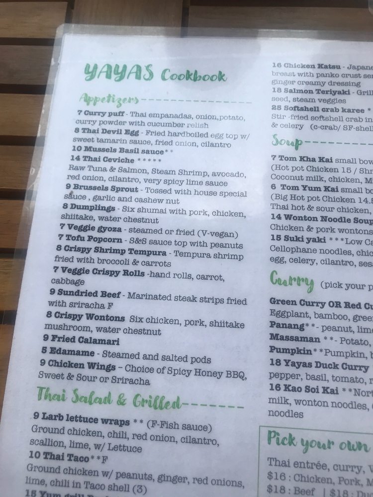 Introducing Yaya's Cookbook, a trendy and casual Asian Fusion restaurant located in Henrico, VA. This Thai-inspired menu offers a variety of vegan and vegetarian options, making it a great choice for those with dietary restrictions. The restaurant also provides excellent amenities such as delivery, takeout, happy hour specials, and even catering services. With a full bar, outdoor seating, and a dog-friendly environment, Yaya's Cookbook is perfect for groups and families alike. The bold flavors and cozy atmosphere make this spot ideal for both lunch and dinner. Don't miss out on trying their dishes that perfectly blend traditional Thai flavors with a modern twist. Experience the vibrant and lively ambiance of Yaya's Cookbook while enjoying their incredible cuisine.
